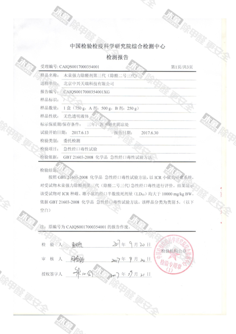 木童除醛2號(hào)三代安全性檢測(cè)報(bào)告
